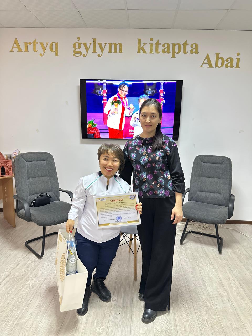 Шара соңында спортшы Гүлім Құрманбаеваға кітапхана ұжымы өз алғыстарын білідіріп,алғыс хат пен естелік сыйлық тарту етіп, алдағы додаларға сәттілік пен жеңіс тіледі.